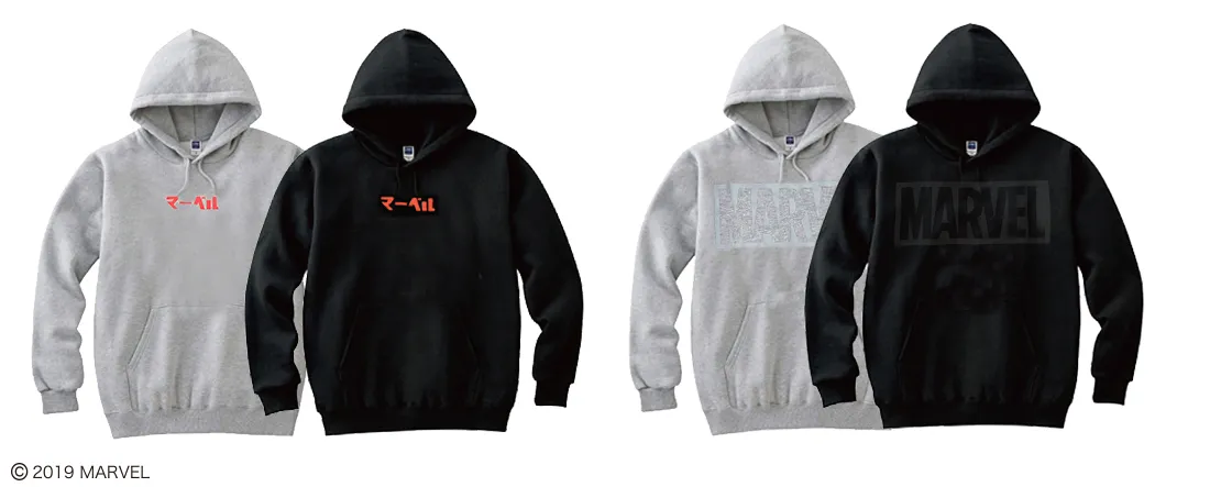 2月1日(金)より第二会期としてオープンする梅田ロフト会場では、マーベルロゴをデザインしたパーカー2柄と、『ガーディアンズ・オブ・ギャラクシー』の中で象徴的なアイテムとしておなじみのカセットテープをデザインしたスウェットを会場先行販売いたします。
