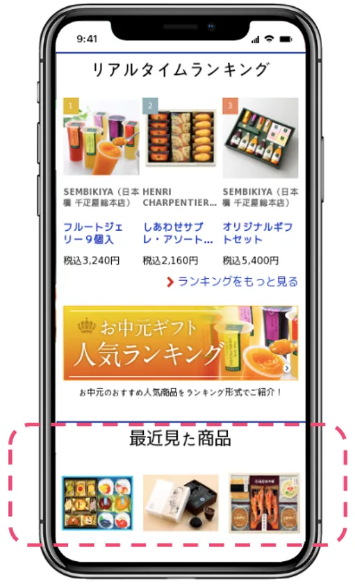 高島屋さまのWebサイトにはあらかじめ商品の閲覧履歴機能がありましたが、お中元商品のみに絞った履歴を表示し、ユーザーの目的に寄り添った商品比較を可能にしました。特定商品に絞った表示を自社開発で実施するには導入コストが高く、一般的なマーケティングツールでは行き届きにくい、きめ細やかなコミュニケーションを実現します。