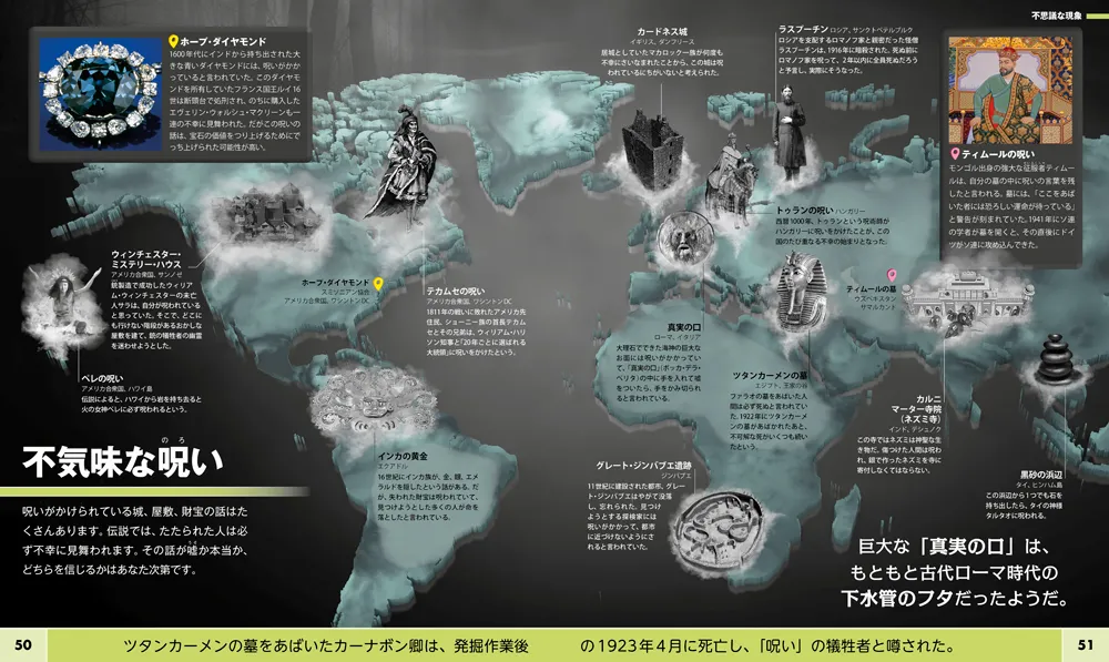 驚きの自然現象、未解決の事象、独特な文化など 世界の不思議を60点以上の地図で紹介!