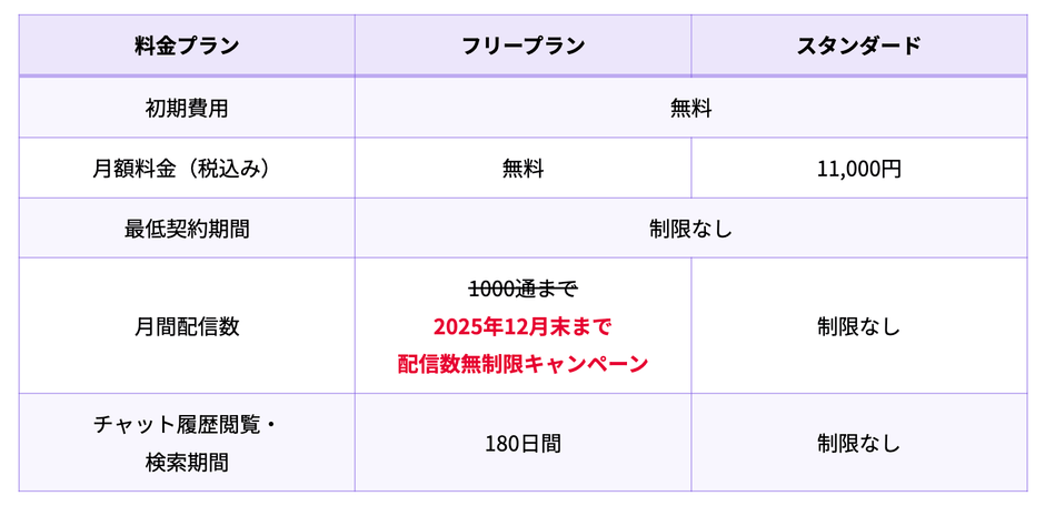 しかし今回のキャンペーンにより、2025年12月末まではフリープランでも配信数無制限でご利用いただけます。