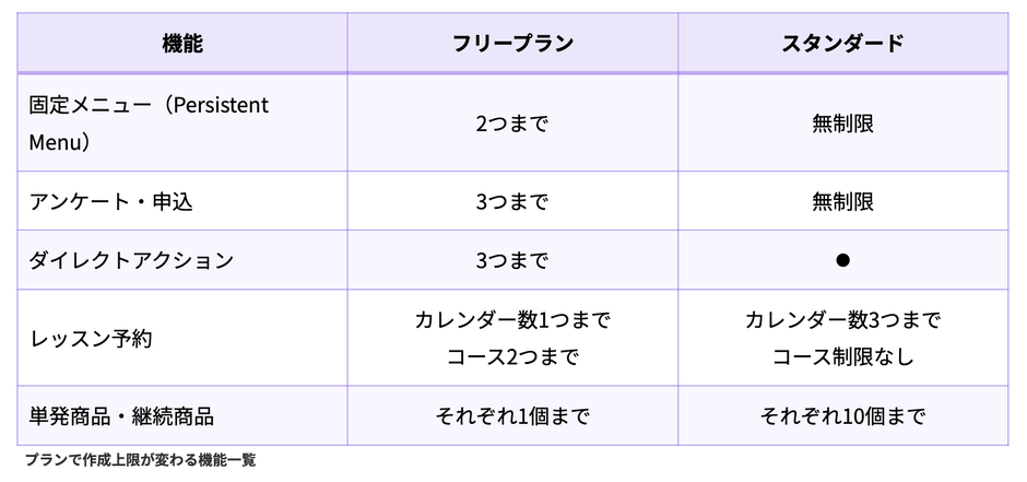 自動応答やテンプレートなど上記の表にない機能は、2024年と同様に制限なしでお使いいただけます。