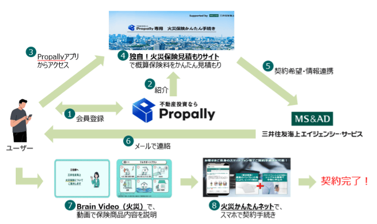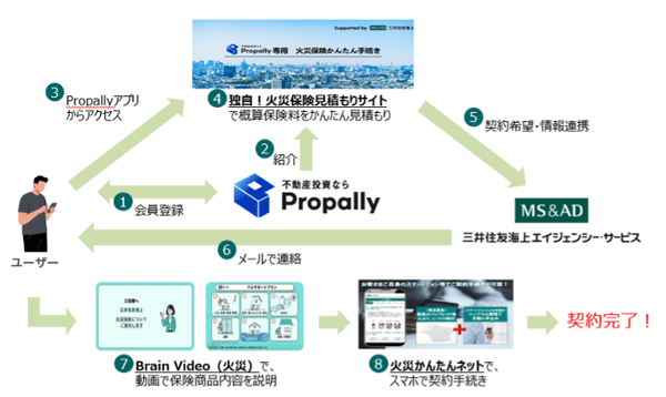 Propally 株式会社(代表取締役CEO:齊藤 郁織 https://propally.co.jp/ )は、MS&ADインシュアランス グループの三井住友海上火災保険株式会社(以下三井住友海上、代表取締役社長:舩曵 真一郎)および同社が100%出資する保険代理店である三井住友海上エイジェンシー・サービス株式会社(以下AS社、代表取締役社長:新見 吉晴)との協議を経て、2025年10月28日、フルデジタルで火災保険が加入可能なスキーム「Propally専用 火災保険かんたん手続き」の構築を完了しました。