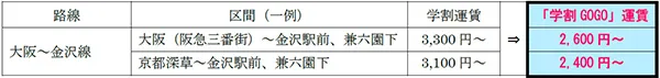 ※学割をご利用の場合、乗車時に必ず学生証をご呈示ください。ご呈示のない場合は通常運賃となります。