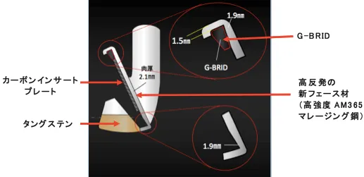 高反発の新フェース材、ソール部のタングステンウエイト、