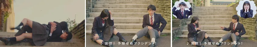 「ラブレター」篇の展開の後、JKは我に返り「しまった!ごめんなさい!」と、その場から告白の返事も聞かずに逃げ出してしまいます。PK現象を常々起こしてしまう自分に「どうしていつもくいこんじゃうの!私のばか!」と逃げながらも後悔するJK。「ちょ、待てよ!」とDKも追いかけます。その様子は青春ドラマさながら。DKは逃げるJKに追いつき、「待てって!ちょっと聞けって!俺も…お前のこと…」と気持ちを伝えようとしたその時!