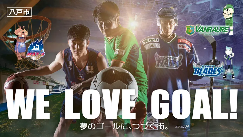 そこで、八戸市は、3つのプロスポーツチームで、夢のゴールをかなえたいと挑戦し続ける選手たち、そして地域を挙げて応援する人たちが、ひとつになって躍動する「八戸」の姿を動画として制作しました。選手だけではなく、夢の実現を支えたい人たちをも鼓舞し、スポーツを切り口のひとつとした、魅力ある地域づくりを目指していきたいと考えています。