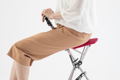 普段は杖としてご利用いただき、疲れた時にはすぐに座れる椅子になります。座面が51cmですので、腰を落して座るよりも膝に負担が少なく立ち座りしやすい構造です。