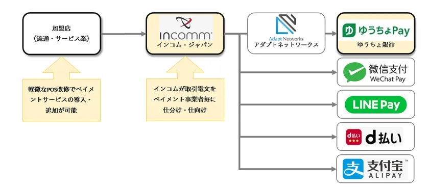 インコム・ジャパンは、「ゆうちょPay」のサービス提供にあたり、株式会社インフキュリオン・グループの子会社である株式会社アダプトネットワークスと提携します。同社のQR/バーコードゲートウェイサービスは、加盟店の迅速なゆうちょPayの導入を実現していきます。