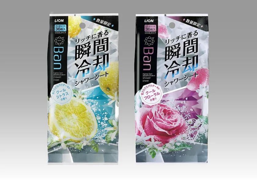 ※「Ban 爽感さっぱりシャワーシート クールタイプ クールシトラスの香り」「Ban 爽感さっぱりシャワーシート クールタイプ クールフローラルの香り」が数量限定発売品です。