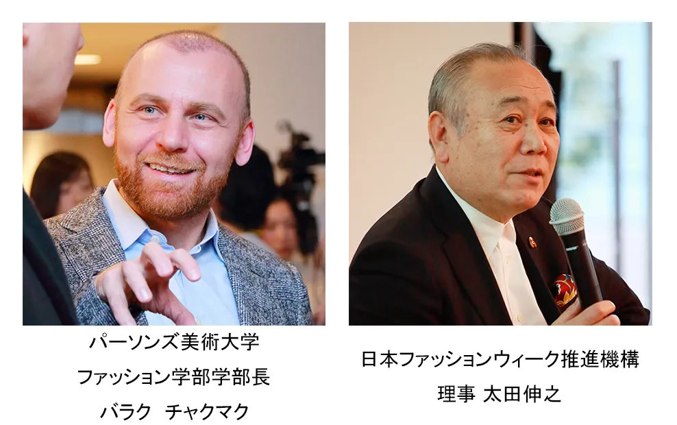 (写真左から、日本ファッションウィーク推進機構理事 太田伸之氏、株式会社バンタン代表取締役会長 石川広己、パーソンズ美術大学ファッション学部学部長 バラク チャクマク氏)