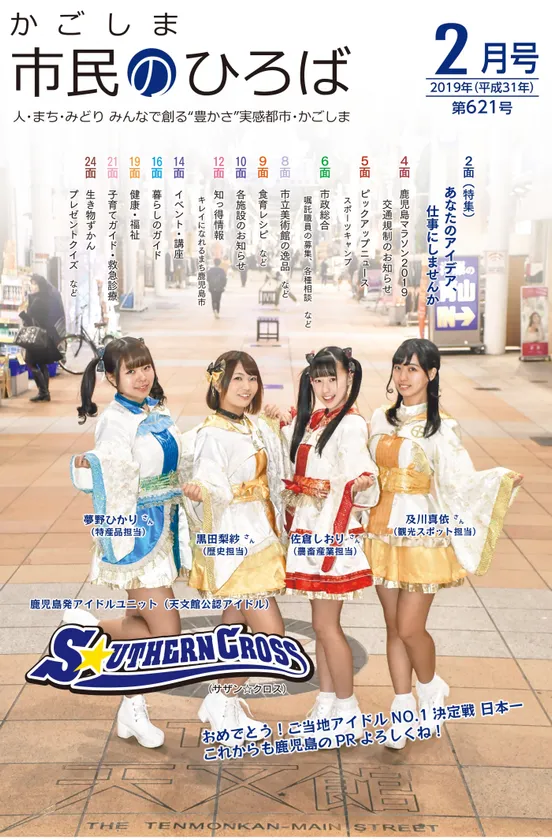 ご当地アイドルが鹿児島市の市政広報紙に登場! ご当地アイドルコンテストで日本一 S☆UTHERN CROSS(サザン☆クロス) 「これからも鹿児島のPR よろしくね!」