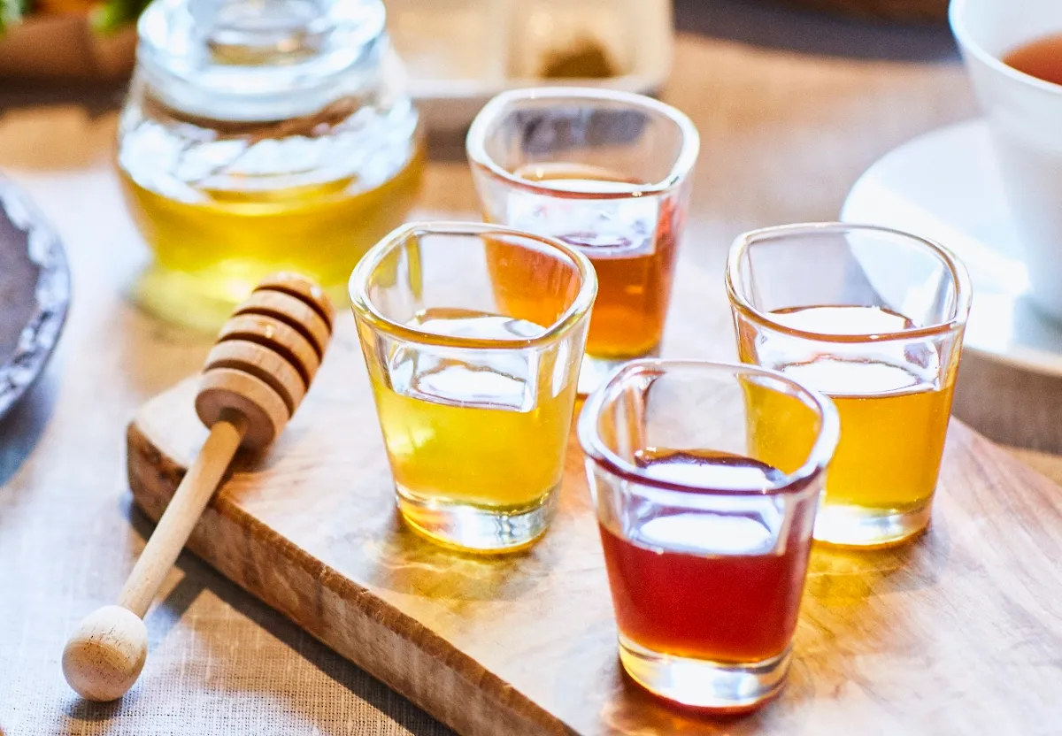 ハーブティー(1セット)、チーズとハチミツ、ハチミツ酒(1回)、