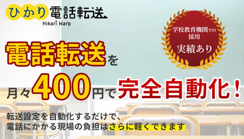 電話の転送設定を自動化する「ひかり電話転送」は、現在多くの学校で実際にご活用いただいており、毎日の電話転送が負担なく行えると大変好評をいただいております。