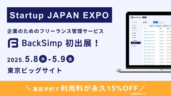永久15%OFF特典あり!フリーランス管理ツール「BackSimp」が日本最大級のスタートアップ展示会「Startup JAPAN 2025」出展