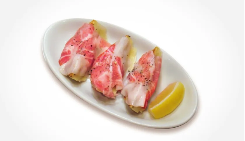 ■クリームソース餃子の生ハム包み Cream sauce gyoza wrapped in pork ham