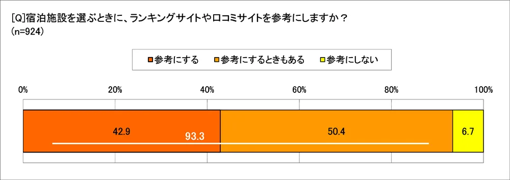 宿泊施設の「ランキング、口コミを参考にする」93.3%
