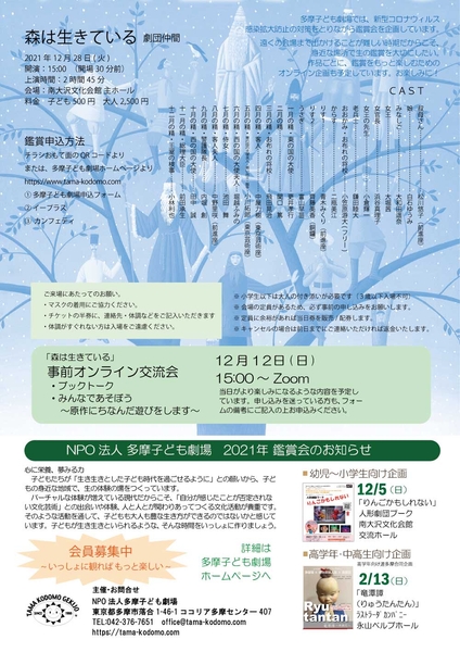 子どもたちに生の観劇体験を NPO法人多摩子ども劇場 親子向け鑑賞会『森は生きている』上演決定 カンフェティでチケット発売