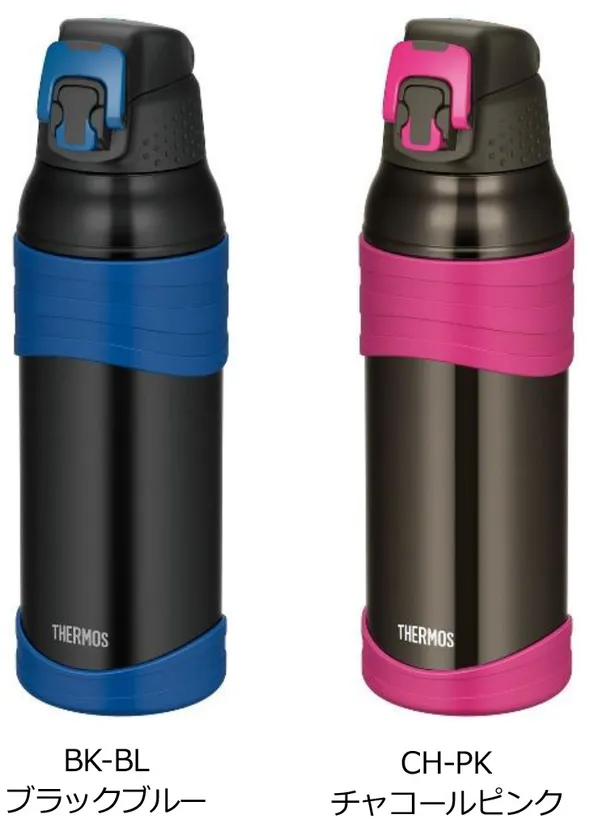 今回のリニューアルでは、ロックリングを変更。新製品のスポーツボトル(FHTシリーズ)でも採用している操作しやすい大きなツートンカラーのロックリングにすることで、ロックの確認がより分かりやすくなりました。また、上部のシリコーン製ボディリングの幅をより広く設計。運動中の濡れた手でも握りやすく滑りにくいのが特長です。サイズは1.0L、カラーはブラックブルーとチャコールピンクの2種類を用意しています。