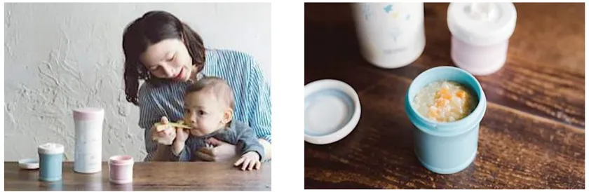 見た目も可愛く機能的なサーモスの2種類の離乳食ケースで、赤ちゃんとのおでかけをお楽しみください。