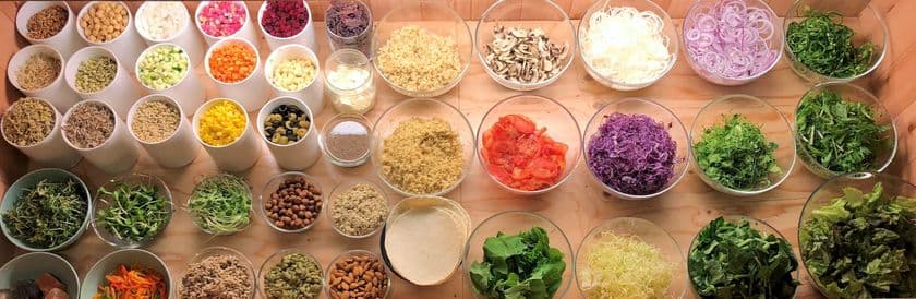 罪悪感0の食べ放題。約50種の食材のほとんどが有機、無農薬、減農薬、無化学肥料、人にも自然にも優しい食材となります。ビュッフェスタイルですので、ご自身で好きなように具沢山なサラダボウルを作って、楽しく美味しく健康に。