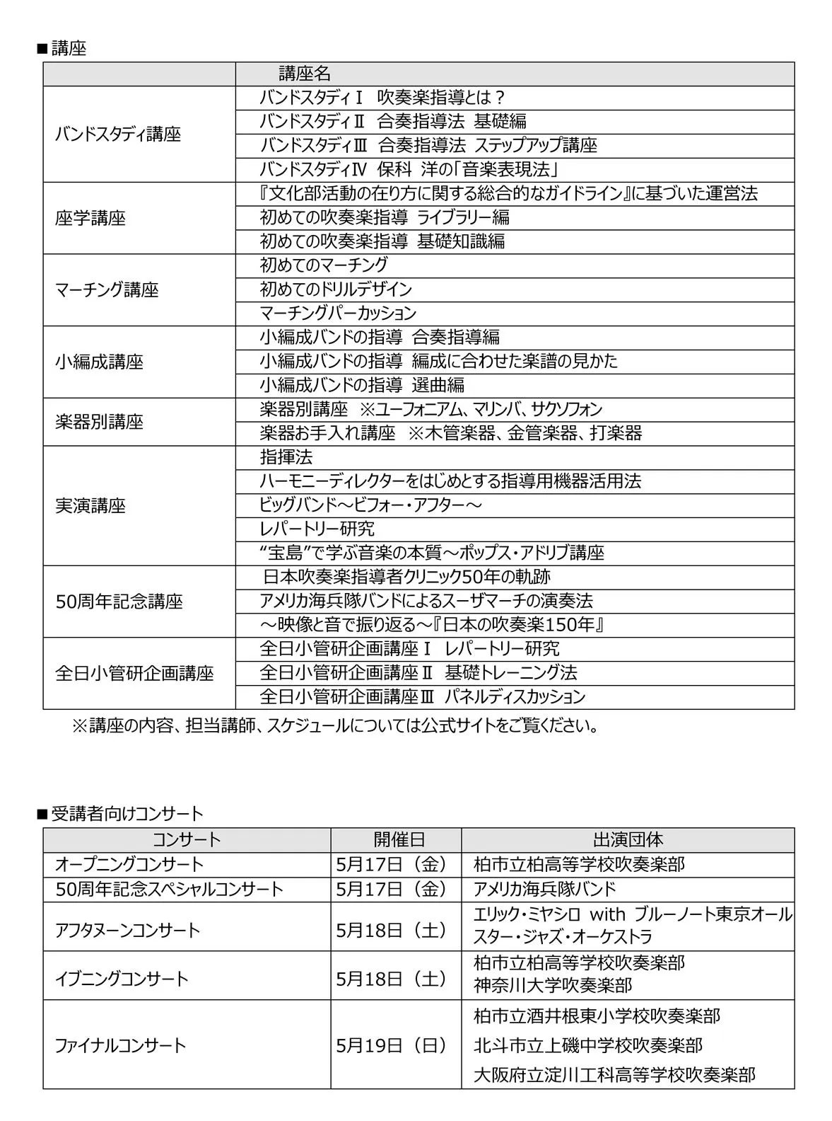 <「第50回 日本吹奏楽指導者クリニック」開催概要>