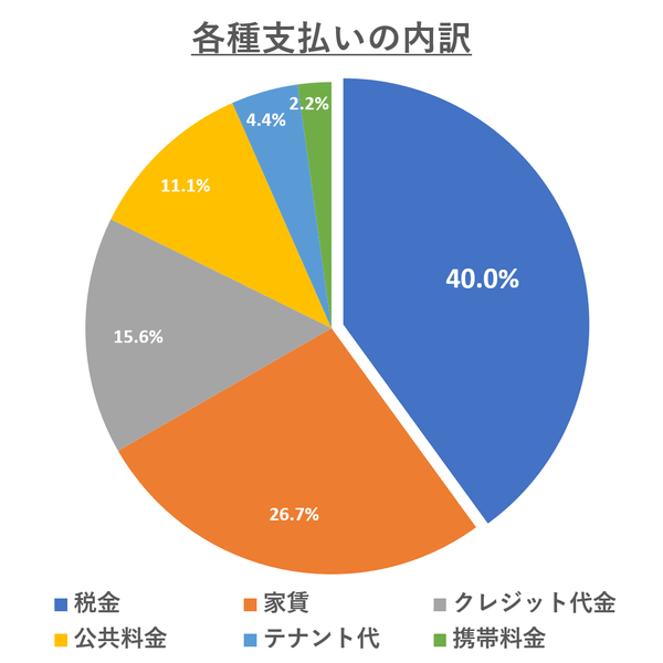各種支払いの内訳は「税金」が最多