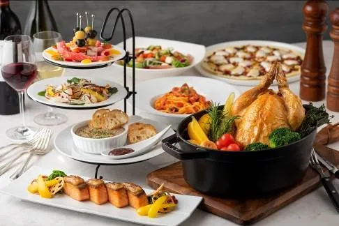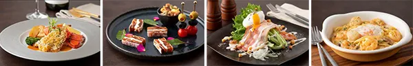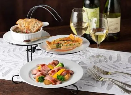 トップ、セカンド、メインのメニューからそれぞれお好きな一皿をセレクトし、3段のアフタヌーンティー風でお楽しみいただける盛り合わせスタイル。シェアしてお召しあがりください。