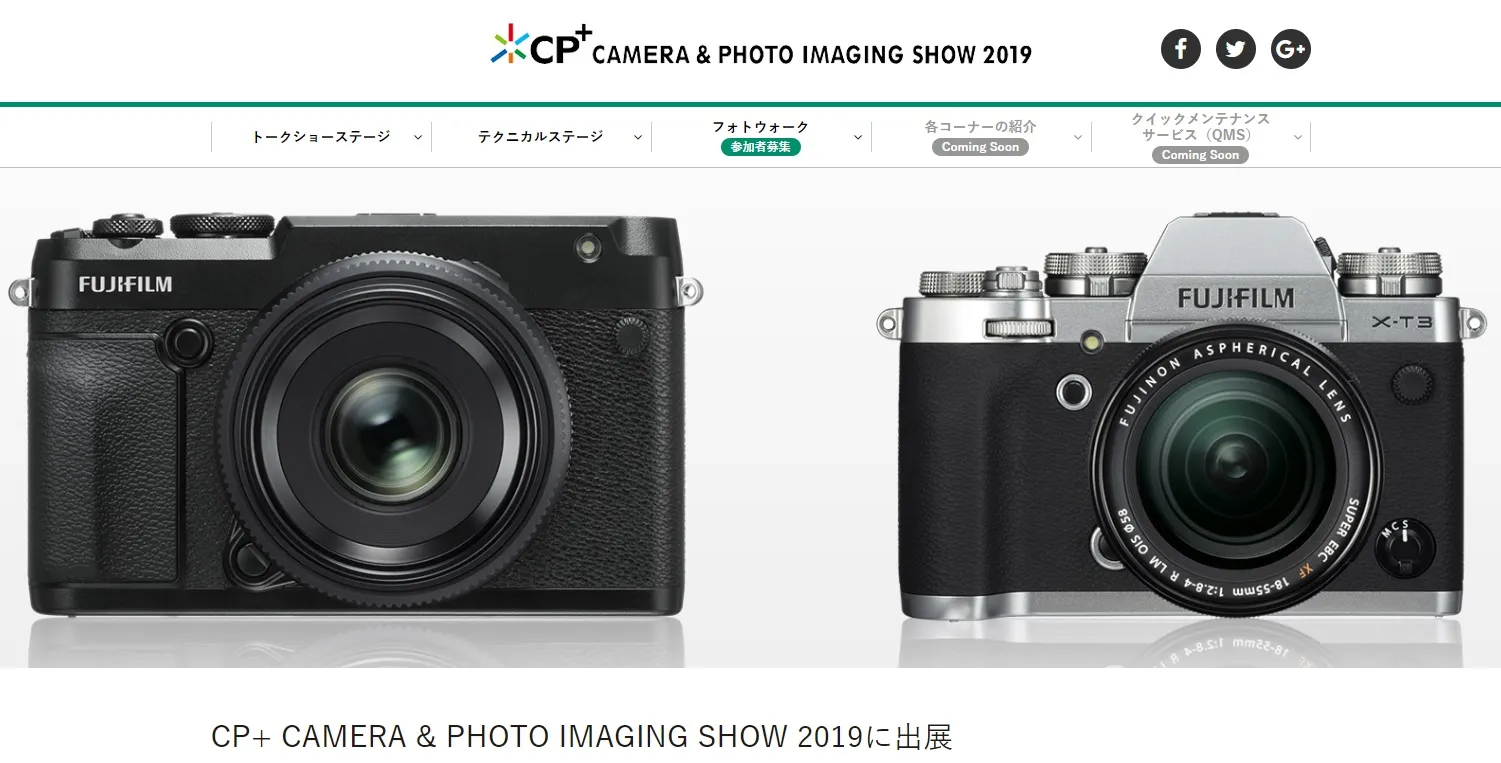富士フイルム カメラと写真のワールドプレミアショー「CP+(シーピープラス)2019」出展のお知らせ