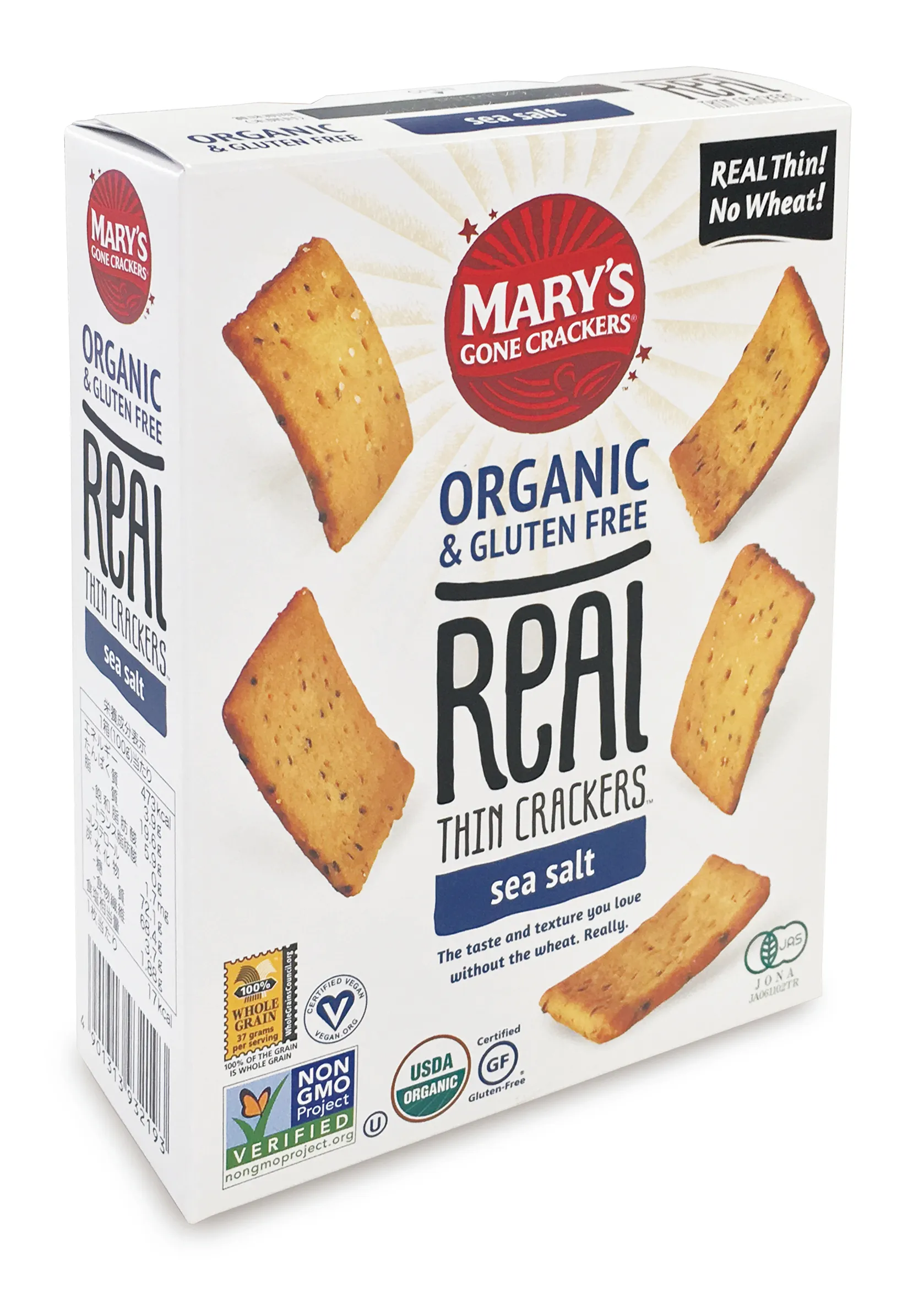 『リアルクラッカー』は亀田製菓の100%子会社であるアメリカのMary’s Gone Crackers(メアリーズゴーンクラッカーズ)と共同開発し、製造した商品です。Better For Youの本場であるアメリカで製造し、日本に輸入して販売する初めての試み!オールオーガニック(有機原材料使用)・ホールグレイン(全粒穀物使用)・アレルゲンフリー(特定原材料等27品目不使用)を兼ね備えたクラッカーで、農薬・化学肥料を使わず自然のままに育った有機玄米と有機素材を、皮ごとホールグレインで使用し、有機チアシードなどを練り込み、香ばしく焼き上げました。アメリカ、日本の有機認証に加え、NON-GMO(遺伝子組み換えでない)、ビーガン、グルテンフリーも認証取得。安心安全にみんなで食べることのできる、まさにバリアフリーなクラッカーです。