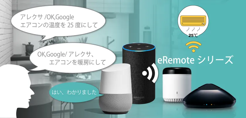 Amazon EchoとGoogle Homeで、 今あるエアコンの詳細操作が可能に ~eRemoteシリーズ、スマートスピーカーとの連携で 新たに3機能を追加~