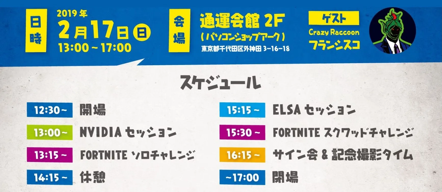 2019年 2月17日(日): 秋葉原 通運会館 2F(パソコン SHOP アーク上)イベントスペース
