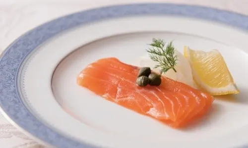 人気のスモークサーモンは、レモンとともにシンプルにお召しあがりください。