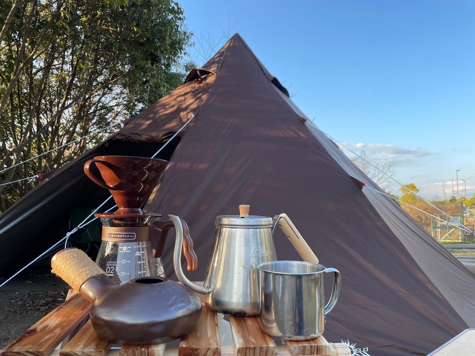・焚き火でネパールの生豆を焙煎し、コーヒーの香りと味わいを深めます。