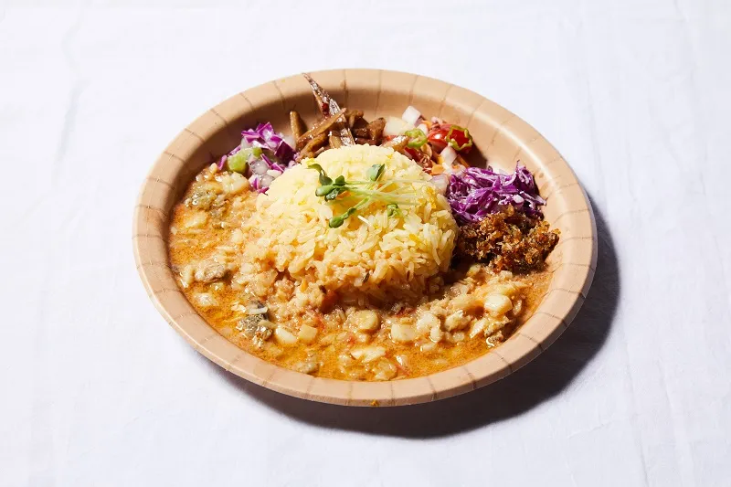 煮干し出汁と旬のみかんを取り入れたカレー。スパイスに負けない出汁とみかんの香りに、隠し味に白味噌と醤油を加え、和×スパイスの新しいブレンドの誕生です。インスタ映えを目指した見た目も注目です。