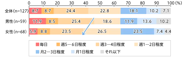 【図3】男女別 乳酸菌入りお菓子の摂取頻度(単一回答・n=127)
