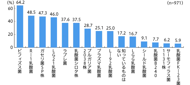 【図6】乳酸菌の認知率(複数回答・n=971)