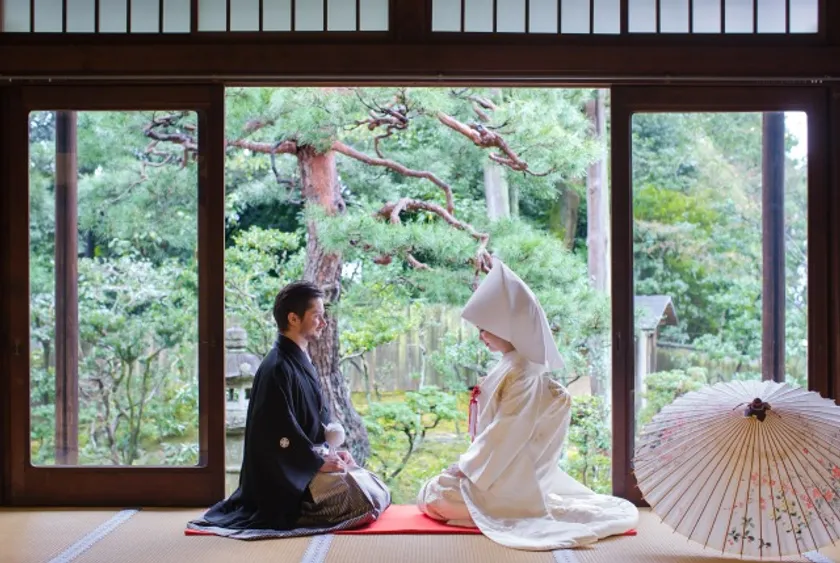 和の趣あふれるウッドベースの落ち着いた雰囲気、喧騒を忘れさせる隠れ家のような空間で、世界遺産など由緒ある神社/城/仏閣での挙式を、和装/小物選びからトータルプロデュースします。