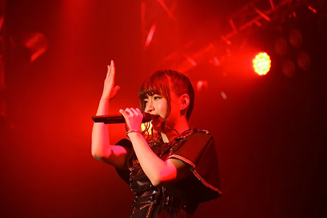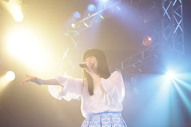 ステージに現れるなり、愛らしい表情とスイートな歌声で会場の空気をさわやかに塗り替えたのがhalca。「スターティングブルー」「センチメンタルクライシス」やライブ初披露の「Knockin' on!!」など、どの曲にもキュートな振りがついていて、見た目でも楽しませる。MCでのふわふわした印象と歌唱時のギャップも込みで観客を引き込んだ。