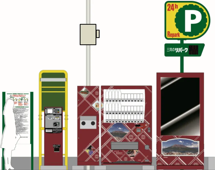 「三井のリパーク」鹿児島金生町駐車場に設置した高機能自動販売機のイメージ図