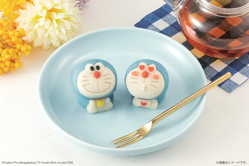 ドラえもんがキュートな表情の和菓子になってあらわれた! にっこり顔とメロメロ顔の2種類/鈴など細かい部分も丁寧に再現
