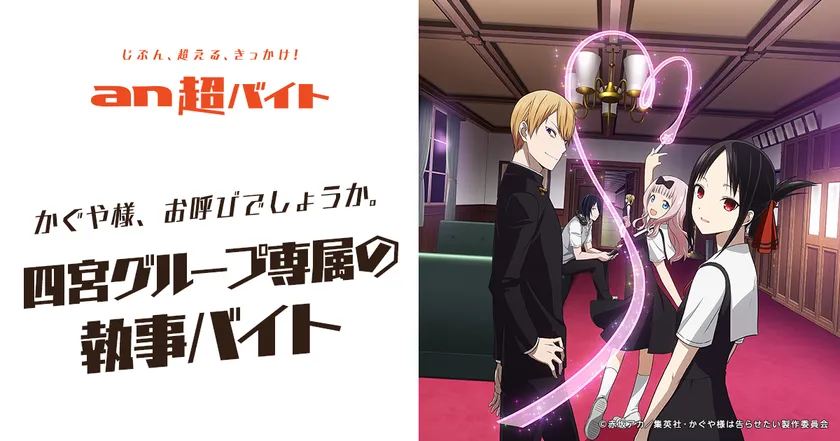“四宮グループ専属の執事”、報酬は日給20万円+金の延べ棒! 『かぐや様は告らせたい~天才たちの恋愛頭脳戦~』 ×「an超バイト」でバイト募集! ~かぐや様、お呼びでしょうか。~