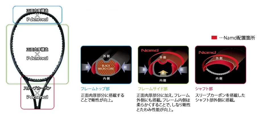 ■新次元カーボン・Namdを部位ごとに効果的に配置することであらゆるショットの精度が向上