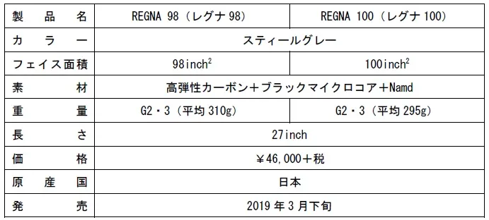 ヨネックス株式会社(代表取締役社長:林田草樹)は、スウィングスピードに応じた高精度のショットを生み出すテニスラケット・REGNAシリーズの新製品『REGNA 98(レグナ 98)』、『REGNA 100(レグナ 100)』を 2019年3月下旬より発売いたします。