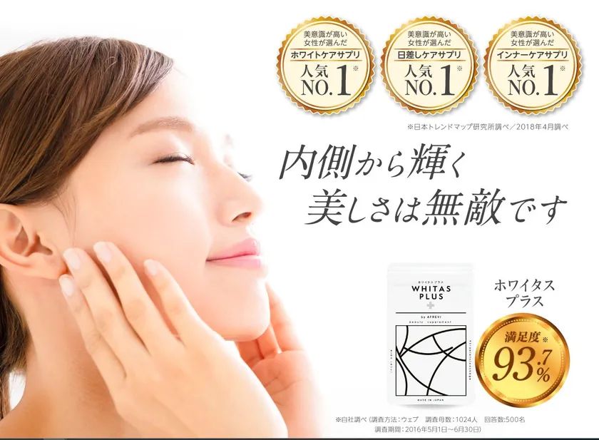これまでホワイタスプラスは、美容に悩むおおくの方々に寄り添い・支持され続けてきました。おかげさまで美意識が高い女性が選ぶケアサプリとしてNO.1を獲得するなど美容サプリメントとして高い認知度を誇るブランドとなってきております。