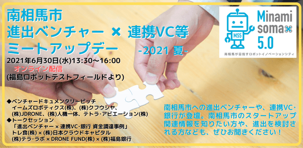 福島県南相馬市のベンチャー企業、VC、金融機関が集結。『交流』をテーマとしたオンラインイベントを6月30日(水)に開催