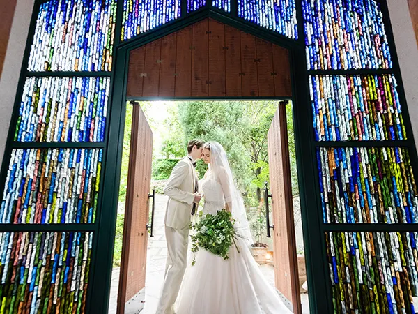 また、挙式中の音楽はすべて生演奏(パイプオルガン、バイオリン、フルートなど)でお届け。参加するカップルを深い感動へと誘います。