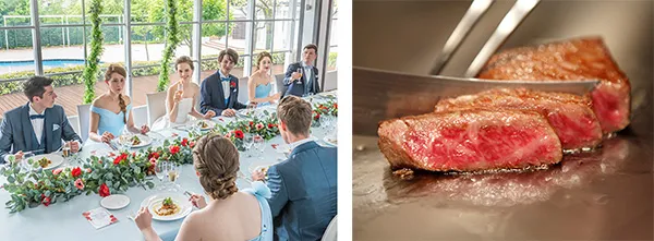実際に披露宴でゲストに提供する婚礼料理(フォアグラ・オマール海老を含むフルコースやフレンチ&国産牛フィレステーキなど)を無料でお召しあがりいただけます。