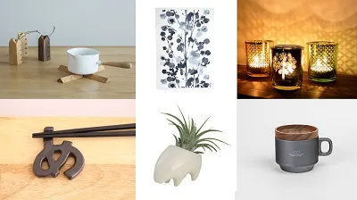 「あ⇔め」箸置き 972円(NIKKORIE)/プランツアニマルヤマアラシ 1,944円(naft)/瓦のスタックマグ 2,916円(icci kawara)