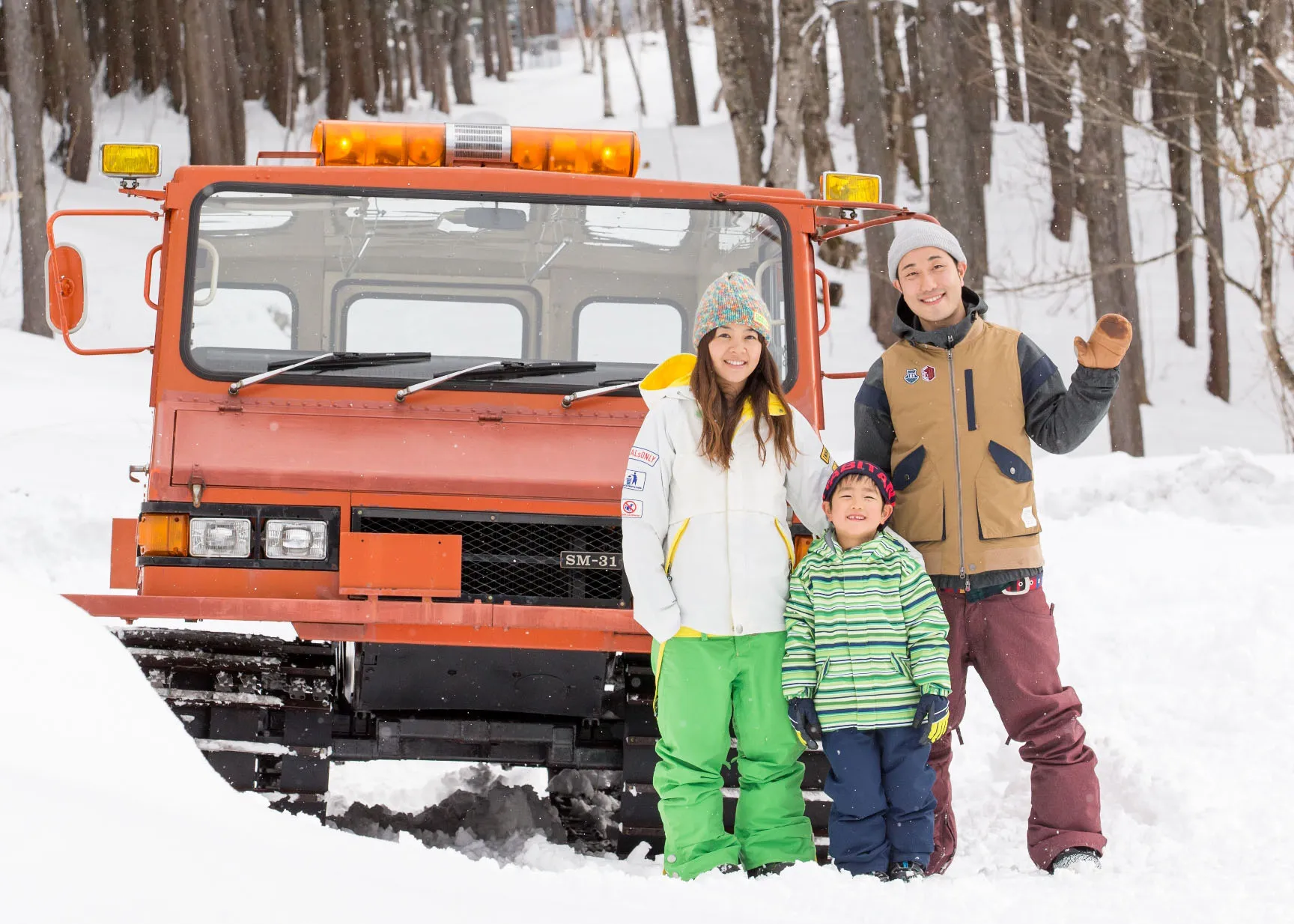 最大登坂能力50度の圧雪車(ウィンチ車)など、乗り物大好きなチビッ子やパパにもお勧めの、大迫力の車体やキャタピラを間近で見たり触れたりできるチャンスです。さらに抽選(※1家族1枚)で、オペレーターが運転する圧雪車の助手席乗車体験会もございます。どなたさまも参加費無料となりますのでお気軽にご来場ください。