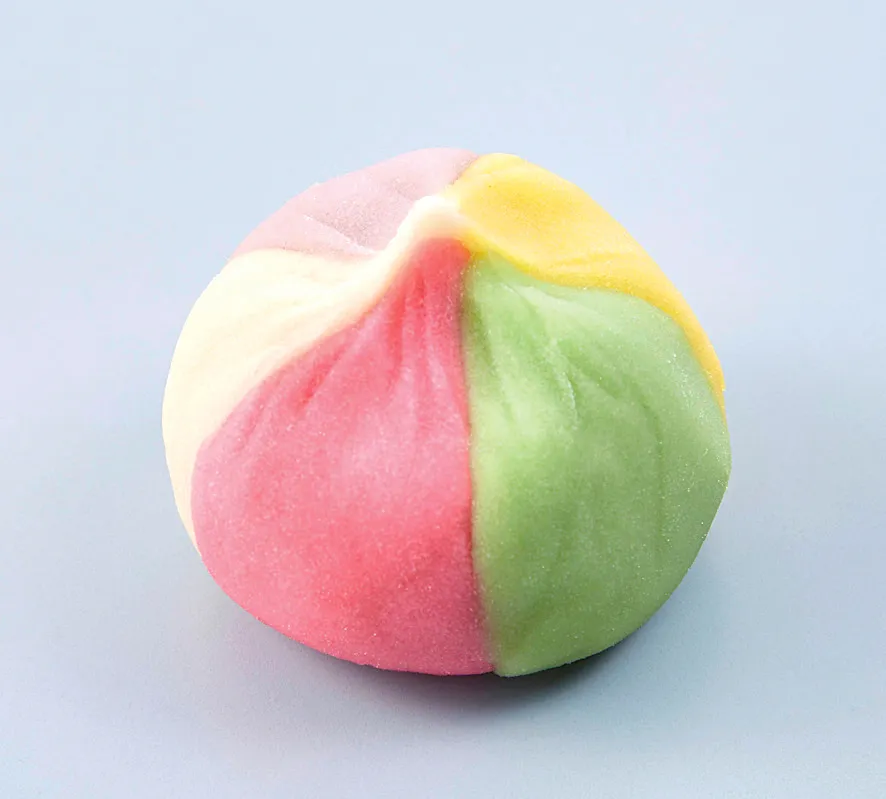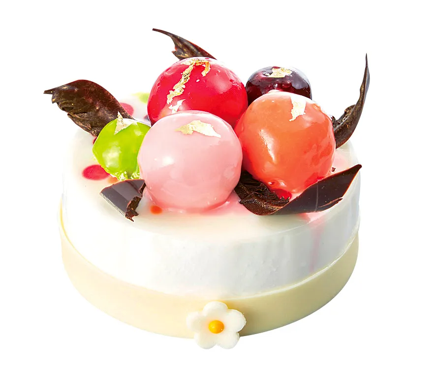 球状のムースを5色のグラサージュで仕上げた色鮮やかなケーキ。